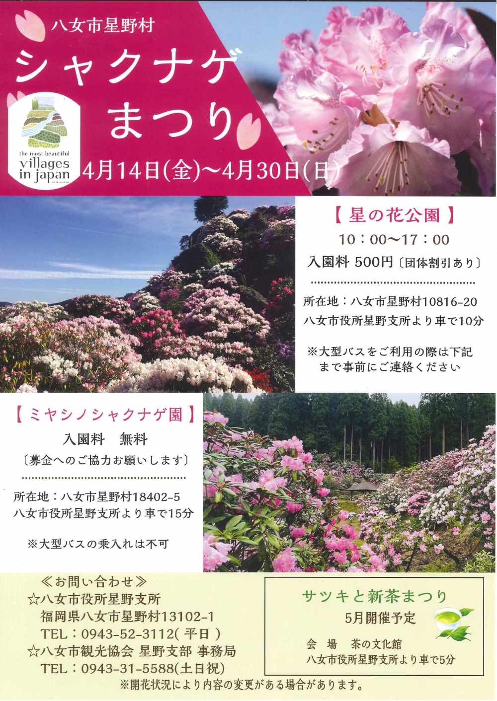 星野村の2か所のシャクナゲ園で、シャクナゲまつりが開催されます!