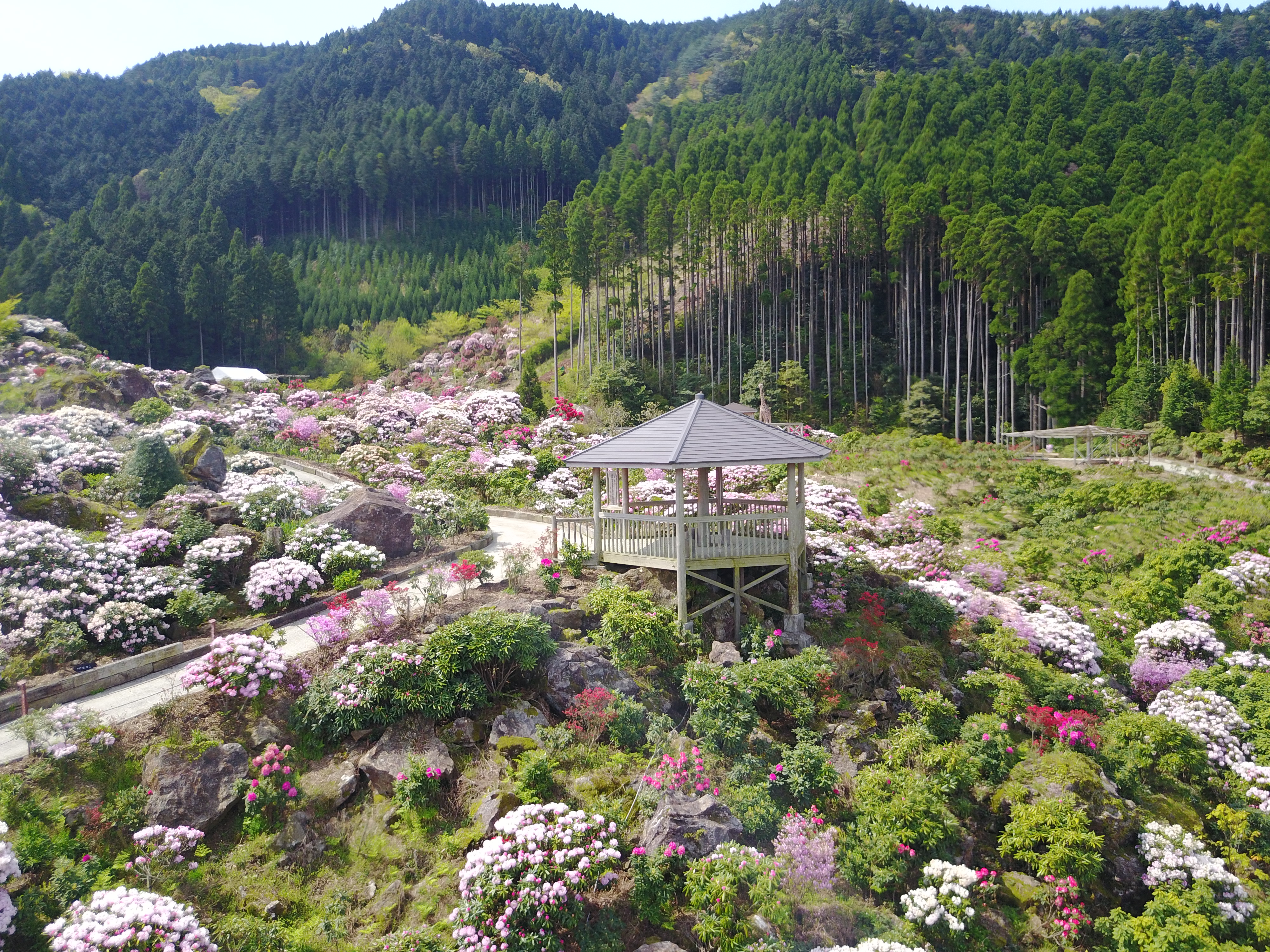 足達木材の社長である足達透(とおる)さんが、八女市星野村で19年ほど前にある山に魅了されて、その山を購入し開拓。そこに3万のシャクナゲを植えて個人で『星の花公園』という公園を作りました。11年ほど前から毎年5月の咲くシャクナゲの時期に【しゃくなげ祭り】を開催しており、毎年たくさんの観光客の方が訪れます。