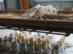 イ草をつかって畳の土台からつくる。