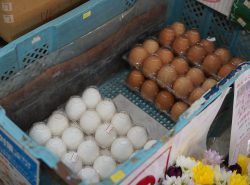 キャンプの際に現地で調達できるように、肉や野菜、くだもの、卵などの生鮮食品も取り扱っています。