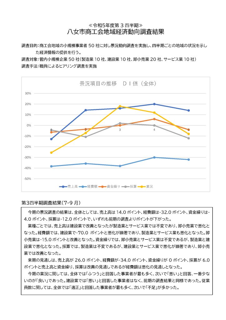 八女市商工会では、商工会地域の小規模事業者50社に対し景況動向調査を実施し、