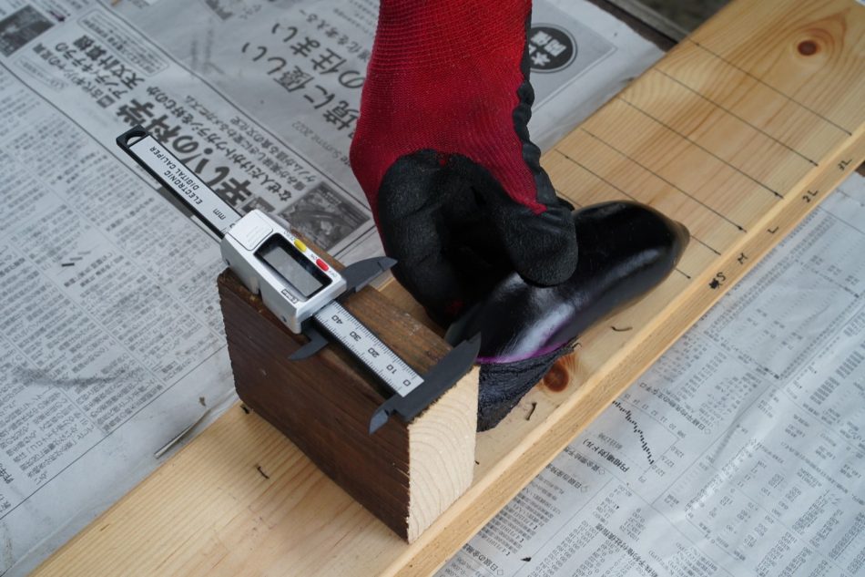 午前中の作業は、主に収穫した茄子を、長さや太さごとに選別していく作業。