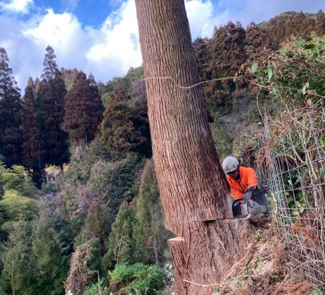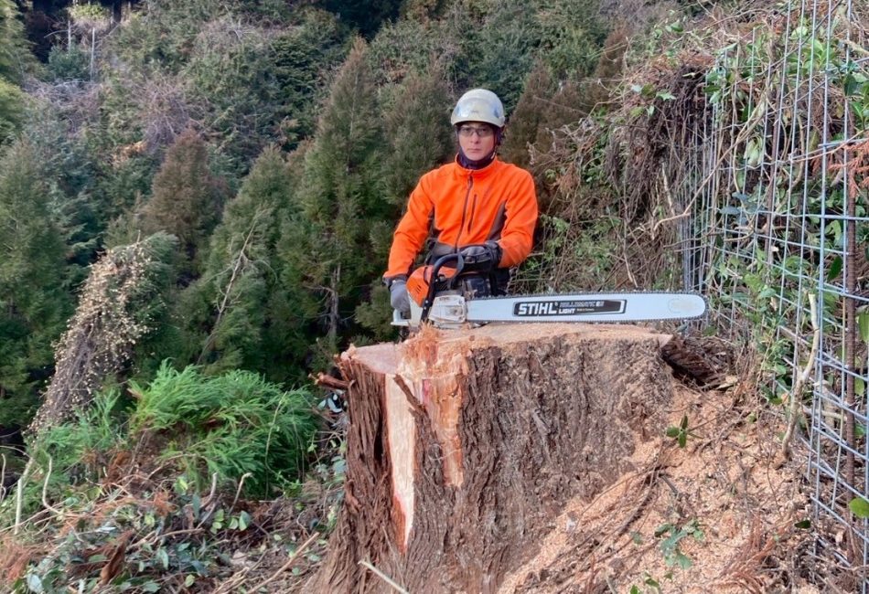 「まったくの未経験で入社しましたが、代表が道具の使い方から丁寧に教えてくれました。今では資格も取り、責任ある作業を任されています!大変なこともありますが、自分の手で木を倒したときの達成感は格別です。」