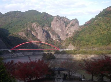 日向神ダムの湖畔にあり、そこから眺める景観は絶景です。