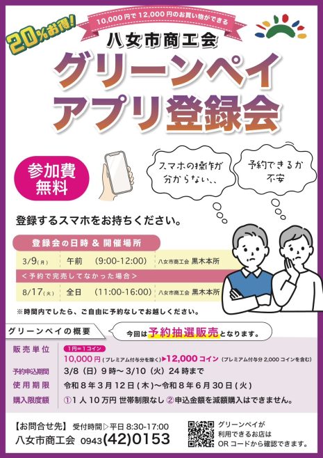 スマホの操作が苦手な方向けのグリーンペイ登録会を行います。
