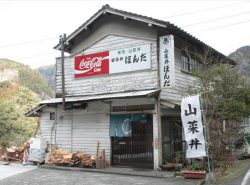日向神ダムを登って黒木町から矢部に入って国道沿いの左側、地元でとれた旬の山菜(タケノコ・フキ・ゼンマイ・椎茸等々)を素材それぞれの特徴に合わせて炊いて行きます。