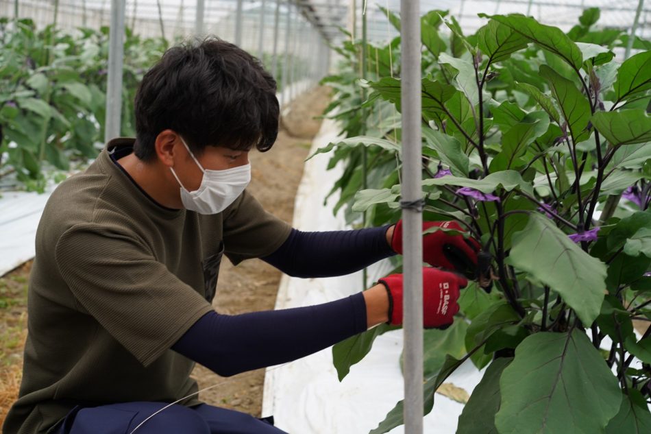 茄子の栽培管理をしている服部さん。